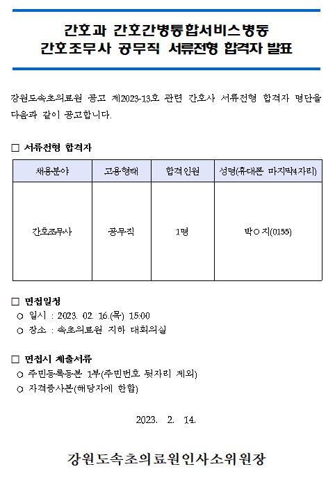 | ¸ðÁýºÐ¾ß | °£È£°ú °£È£°£º´ÅëÇÕ¼ºñ½ºº´µ¿ °£È£Á¶¹«»ç °ø¹«Á÷ ¼·ùÀüÇü ÇÕ°ÝÀÚ ¹ßÇ¥ |