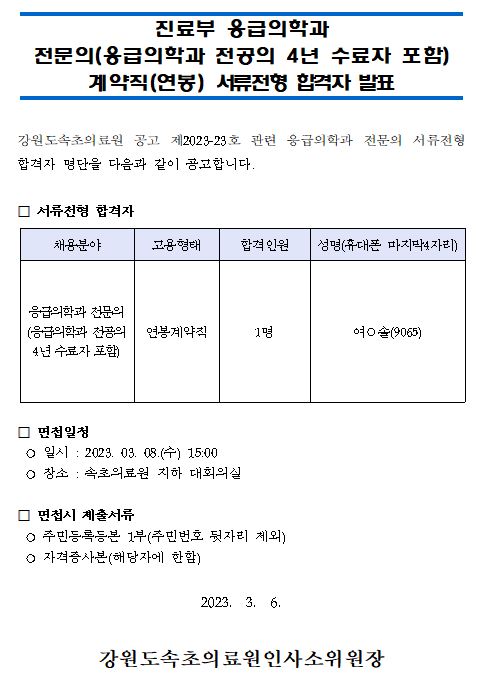 | ¸ðÁýºÐ¾ß | Áø·áºÎ ÀÀ±ÞÀÇÇаú Àü¹®ÀÇ(ÀÀ±ÞÀÇÇаú Àü°øÀÇ 4³â ¼ö·áÀÚ Æ÷ÇÔ) °è¾àÁ÷(¿¬ºÀ) ¼·ùÀüÇü ÇÕ°ÝÀÚ ¹ßÇ¥ |