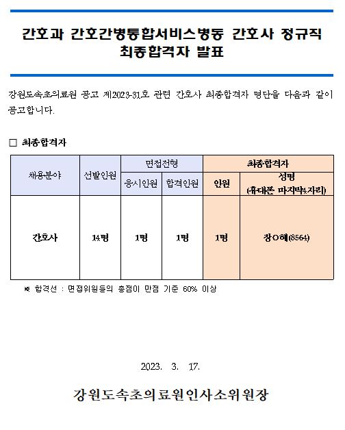 | ¸ðÁýºÐ¾ß | °£È£°ú °£È£°£º´ÅëÇÕ¼ºñ½ºº´µ¿ °£È£»ç Á¤±ÔÁ÷ ÃÖÁ¾ÇÕ°ÝÀÚ ¹ßÇ¥ |