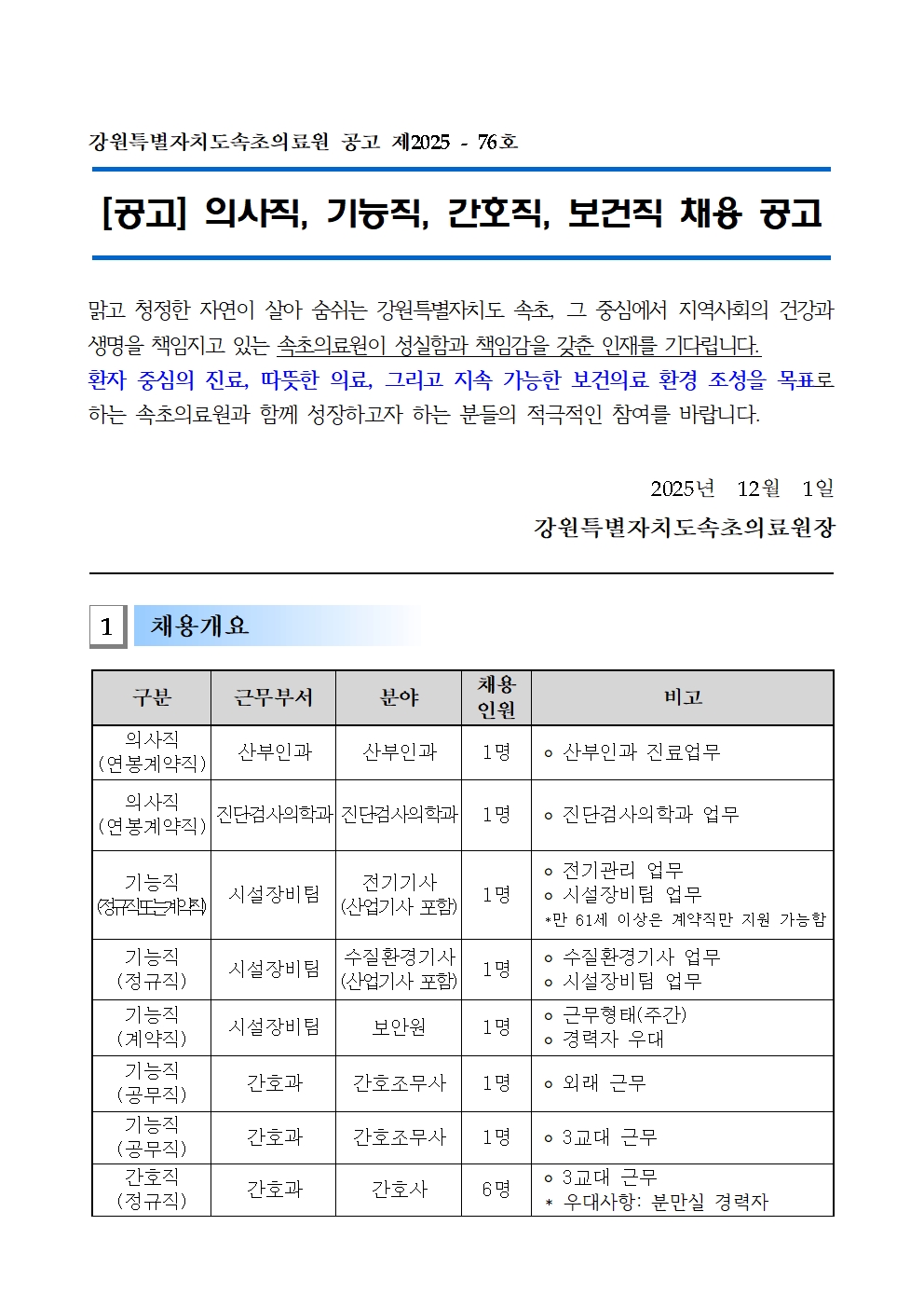 | ¸ðÁýºÐ¾ß | [°ø°í]Á¦2025-76È£ ÀÇ»çÁ÷, ±â´ÉÁ÷, °£È£Á÷, º¸°ÇÁ÷ ä¿ë°ø°í |