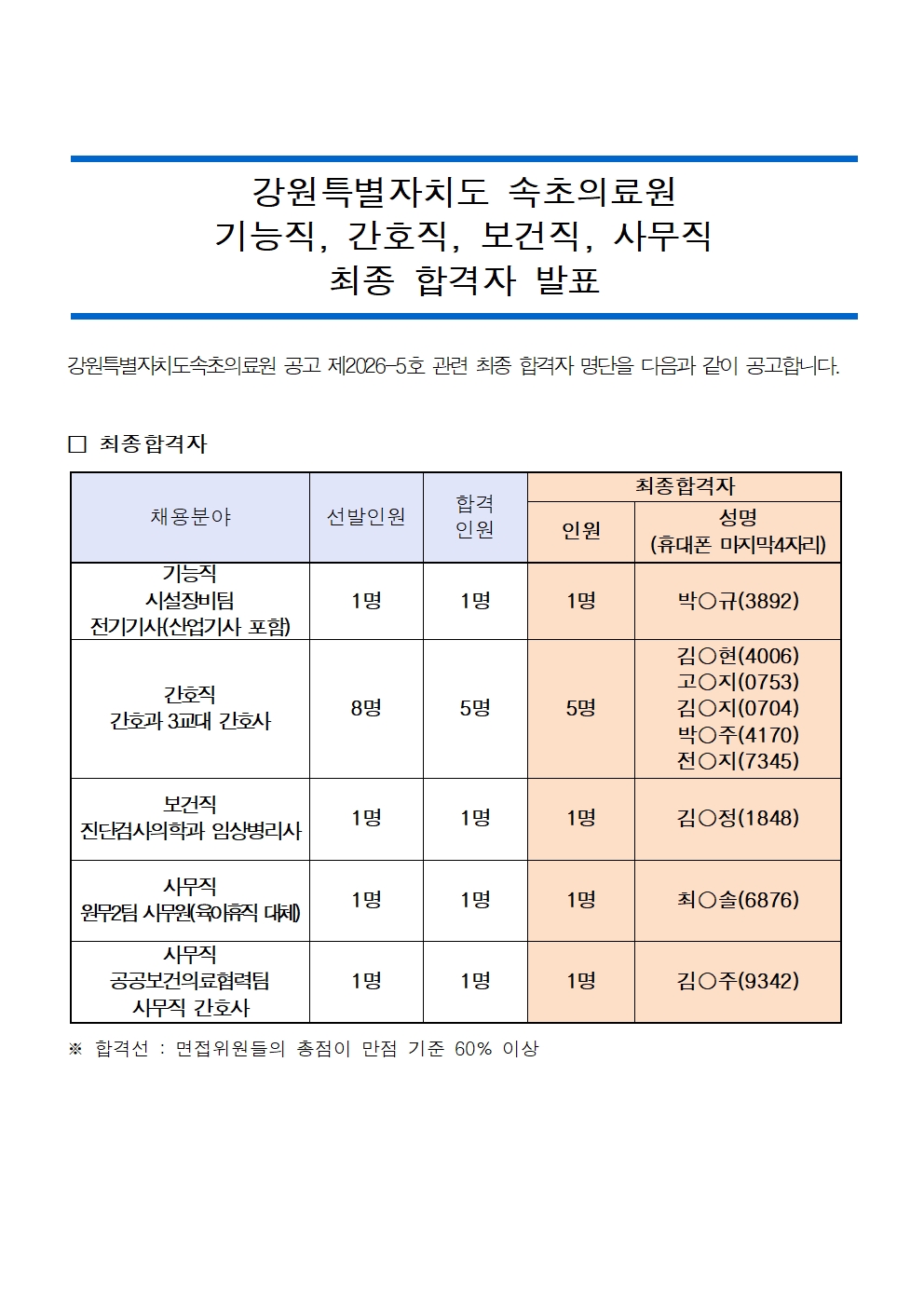 | ¸ðÁýºÐ¾ß | [ÃÖÁ¾ÇÕ°ÝÀÚ ¹ßÇ¥]Á¦2026-5È£ ±â´ÉÁ÷, °£È£Á÷, º¸°ÇÁ÷, »ç¹«Á÷ ä¿ë°ø°í |