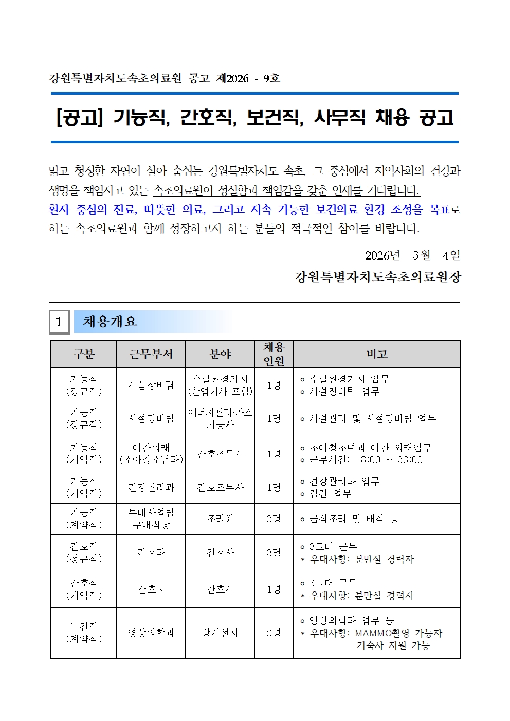 | ¸ðÁýºÐ¾ß | [°ø°í]Á¦2026-9È£ ±â´ÉÁ÷, °£È£Á÷, º¸°ÇÁ÷, »ç¹«Á÷ ä¿ë°ø°í |