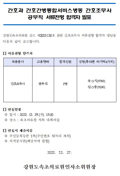 | ¸ðÁýºÐ¾ß | °£È£°ú °£È£°£º´ÅëÇÕ¼ºñ½ºº´µ¿ °£È£Á¶¹«»ç °ø¹«Á÷ ¼·ùÀüÇü ÇÕ°ÝÀÚ ¹ßÇ¥ |