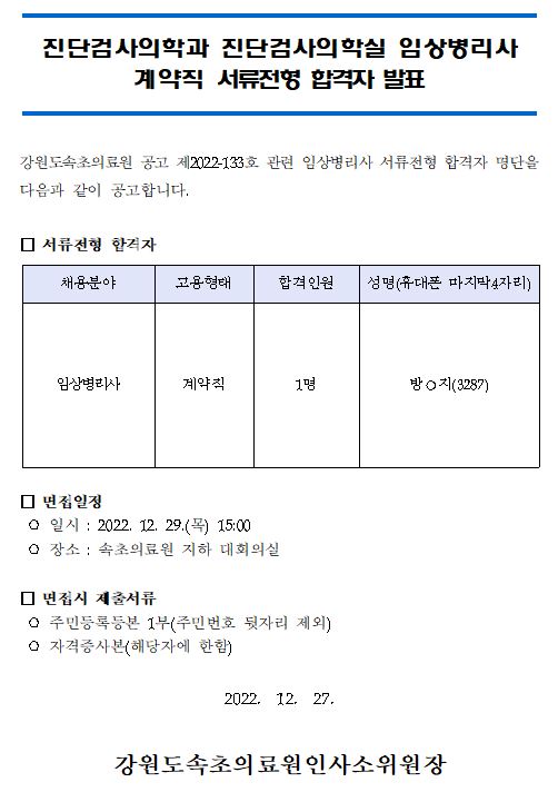 | ¸ðÁýºÐ¾ß | Áø´Ü°Ë»çÀÇÇаú Áø´Ü°Ë»çÀÇÇÐ½Ç ÀÓ»óº´¸®»ç °è¾àÁ÷ ¼·ùÀüÇü ÇÕ°ÝÀÚ ¹ßÇ¥ |