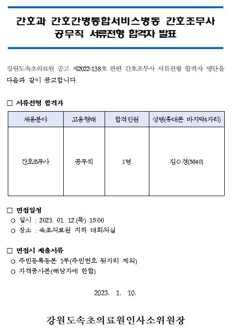 | ¸ðÁýºÐ¾ß | °£È£°ú °£È£°£º´ÅëÇÕ¼ºñ½ºº´µ¿ °£È£Á¶¹«»ç °ø¹«Á÷ ¼·ùÀüÇü ÇÕ°ÝÀÚ ¹ßÇ¥ |