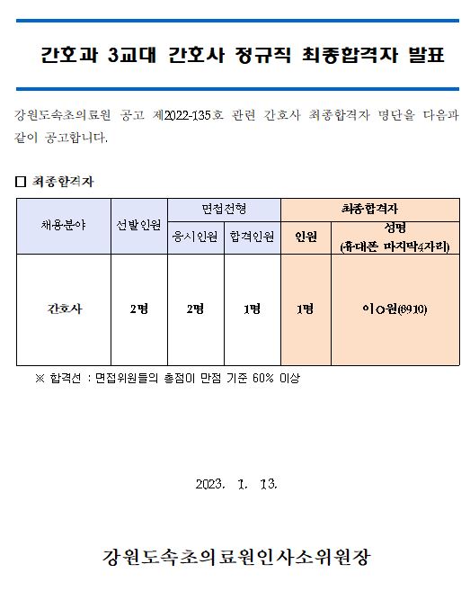 | ¸ðÁýºÐ¾ß | °£È£°ú 3±³´ë °£È£»ç Á¤±ÔÁ÷ ÃÖÁ¾ÇÕ°ÝÀÚ ¹ßÇ¥ |