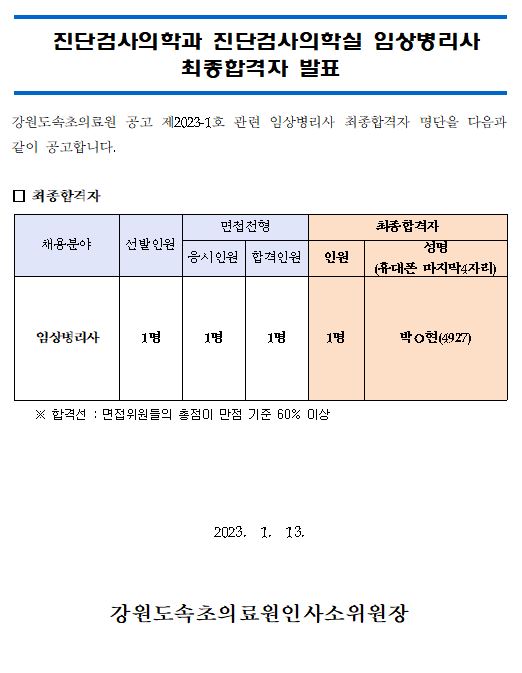 | ¸ðÁýºÐ¾ß | Áø´Ü°Ë»çÀÇÇаú ÀÓ»óº´¸®»ç °è¾àÁ÷ ÃÖÁ¾ÇÕ°ÝÀÚ ¹ßÇ¥ |