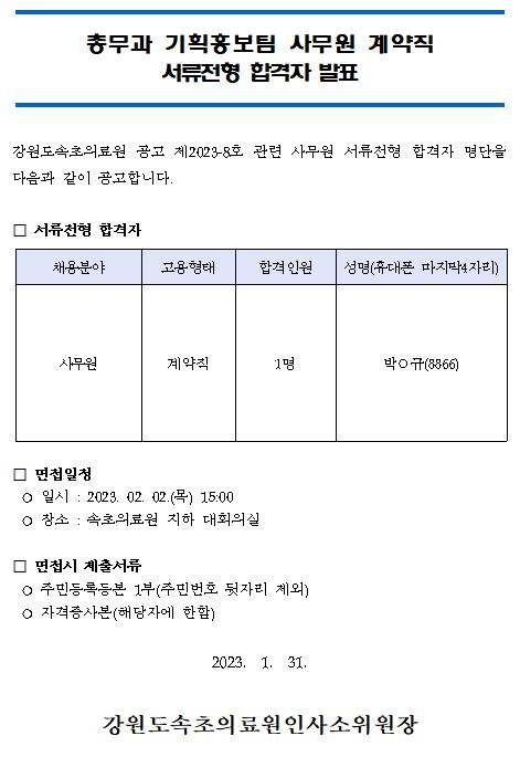 | ¸ðÁýºÐ¾ß | Ãѹ«°ú ±âȹȫº¸ÆÀ »ç¹«¿ø °è¾àÁ÷ ¼·ùÀüÇü ÇÕ°ÝÀÚ ¹ßÇ¥ |