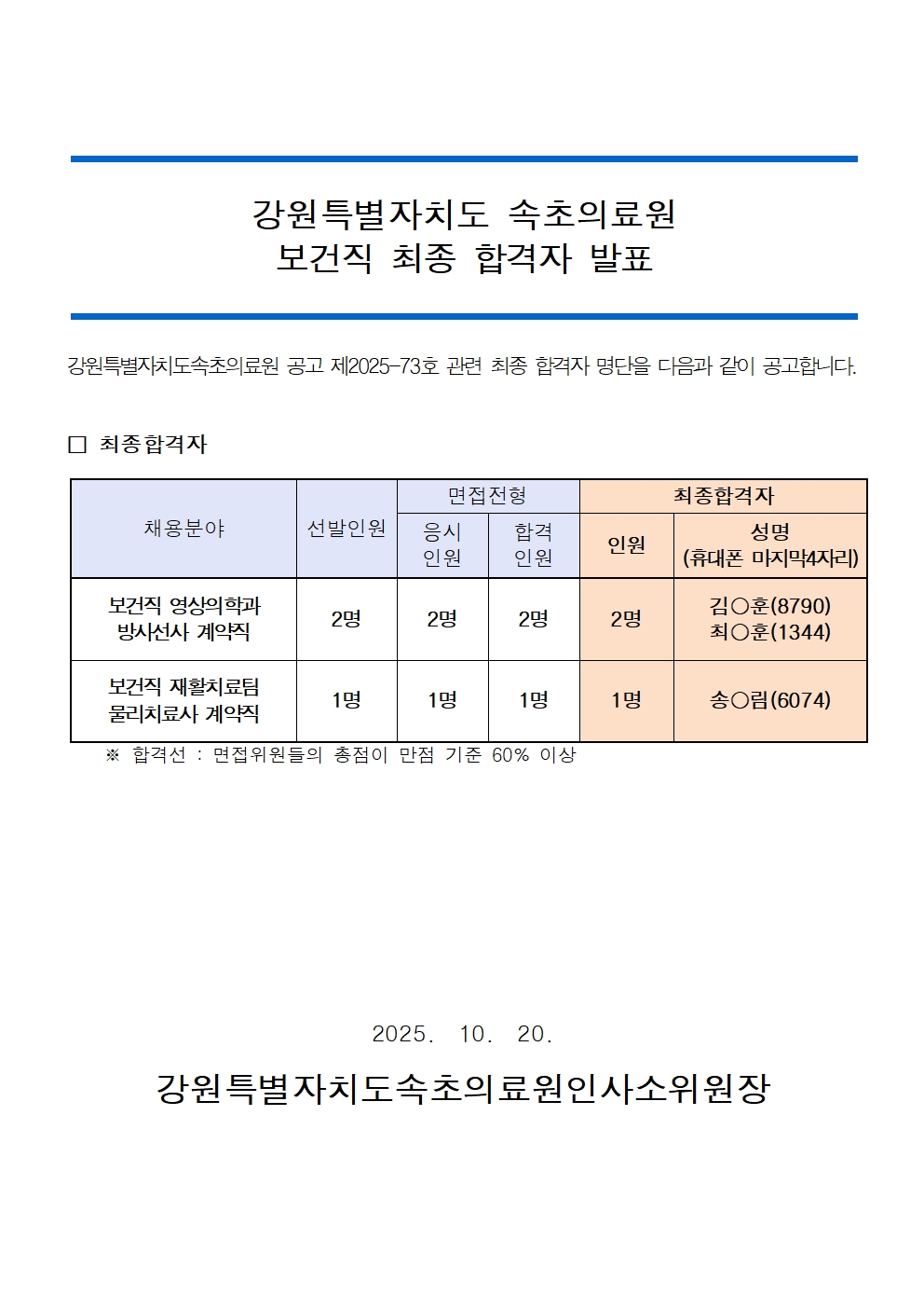 ¸ðÁýºÐ¾ß | [ÃÖÁ¾ÇÕ°ÝÀÚ ¹ßÇ¥] º¸°ÇÁ÷ ÃÖÁ¾ÇÕ°ÝÀÚ ¹ßÇ¥ |