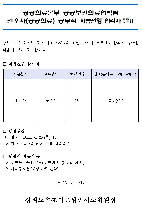 ¸ðÁýºÐ¾ß | °ø°øÀǷẻºÎ °ø°øº¸°ÇÀÇ·áÇù·ÂÆÀ °£È£»ç(°ø°øÀÇ·á) °ø¹«Á÷ ¼·ùÀüÇü ÇÕ°ÝÀÚ ¹ßÇ¥ |