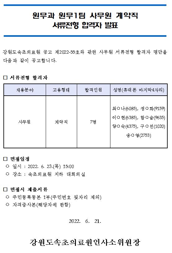 ¸ðÁýºÐ¾ß | ¿ø¹«°ú ¿ø¹«1ÆÀ »ç¹«¿ø °è¾àÁ÷ ¼·ùÀüÇü ÇÕ°ÝÀÚ ¹ßÇ¥ |
