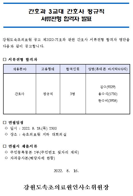 ¸ðÁýºÐ¾ß | °£È£°ú 3±³´ë °£È£»ç Á¤±ÔÁ÷ ¼·ùÀüÇü ÇÕ°ÝÀÚ ¹ßÇ¥ |