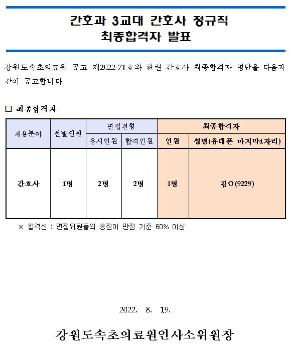 ¸ðÁýºÐ¾ß | °£È£°ú 3±³´ë °£È£»ç Á¤±ÔÁ÷ ÃÖÁ¾ÇÕ°ÝÀÚ ¹ßÇ¥ |