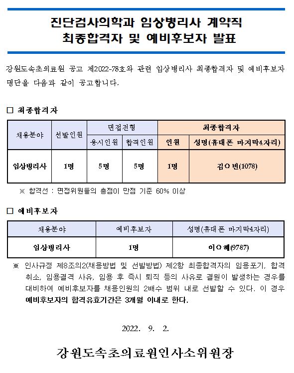 ¸ðÁýºÐ¾ß | Áø´Ü°Ë»çÀÇÇаú ÀÓ»óº´¸®»ç °è¾àÁ÷ ÃÖÁ¾ÇÕ°ÝÀÚ ¹× ¿¹ºñÈĺ¸ÀÚ ¹ßÇ¥ |