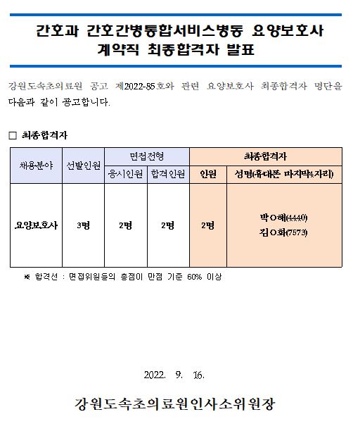 ¸ðÁýºÐ¾ß | °£È£°ú °£È£°£º´ÅëÇÕ¼ºñ½ºº´µ¿ ¿ä¾çº¸È£»ç °è¾àÁ÷ ÃÖÁ¾ÇÕ°ÝÀÚ ¹ßÇ¥ |