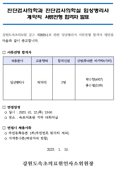 Áø´Ü°Ë»çÀÇÇаú ÀÓ»óº´¸®»ç °è¾àÁ÷ ¼­·ùÀüÇü ÇÕ°ÝÀÚ ¹ßÇ¥