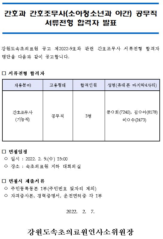 ¸ðÁýºÐ¾ß | °£È£°ú °£È£Á¶¹«»ç(¼Ò¾ÆÃ»¼Ò³â°ú ¾ß°£) °ø¹«Á÷ ¼·ùÀüÇü ÇÕ°ÝÀÚ ¹ßÇ¥ |