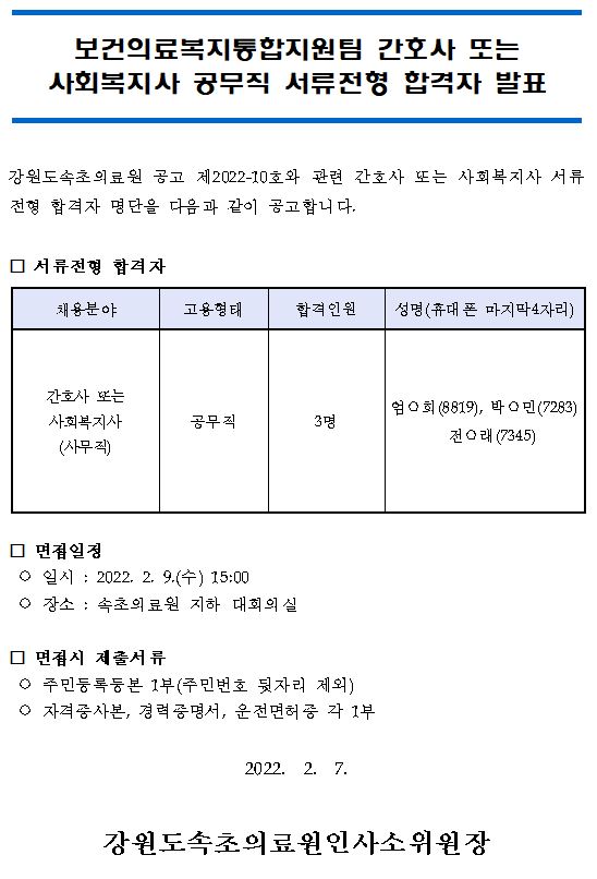 ¸ðÁýºÐ¾ß | º¸°ÇÀǷẹÁöÅëÇÕÁö¿øÆÀ °£È£»ç ¶Ç´Â »çȸº¹Áö»ç °ø¹«Á÷ ¼·ùÀüÇü ÇÕ°ÝÀÚ ¹ßÇ¥ |