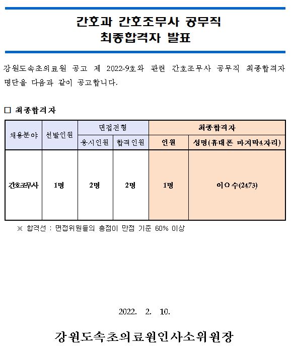 ¸ðÁýºÐ¾ß | °£È£°ú °£È£Á¶¹«»ç(¼Ò¾ÆÃ»¼Ò³â°ú ¾ß°£) °ø¹«Á÷ ÃÖÁ¾ÇÕ°ÝÀÚ ¹ßÇ¥ |