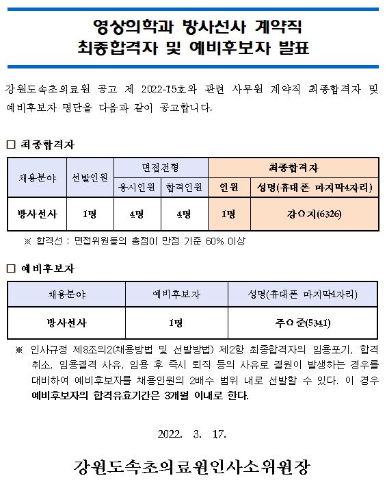 ¸ðÁýºÐ¾ß | ¿µ»óÀÇÇаú ¹æ»ç¼±»ç °è¾àÁ÷ ÃÖÁ¾ÇÕ°ÝÀÚ ¹× ¿¹ºñÈĺ¸ÀÚ ¹ßÇ¥ |
