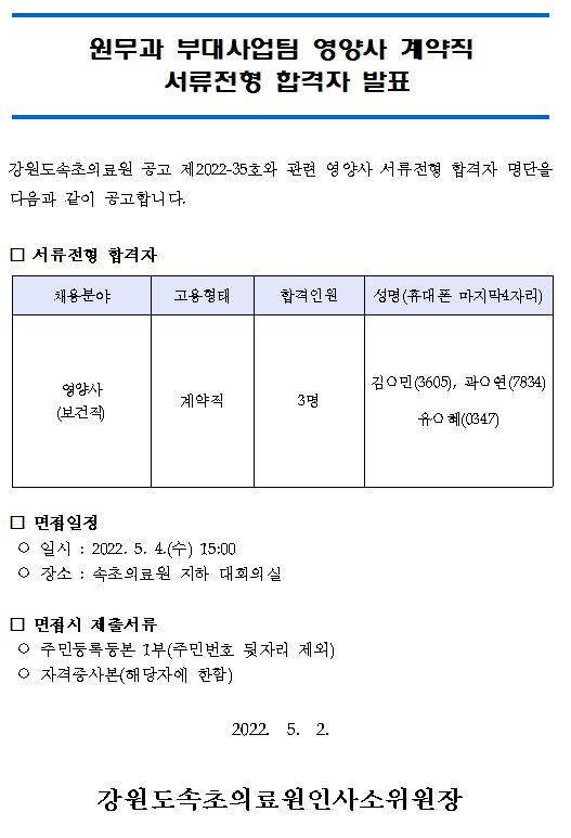 ¸ðÁýºÐ¾ß | ¿ø¹«°ú ºÎ´ë»ç¾÷ÆÀ ¿µ¾ç»ç °è¾àÁ÷ ¼·ùÀüÇü ÇÕ°ÝÀÚ ¹ßÇ¥ |