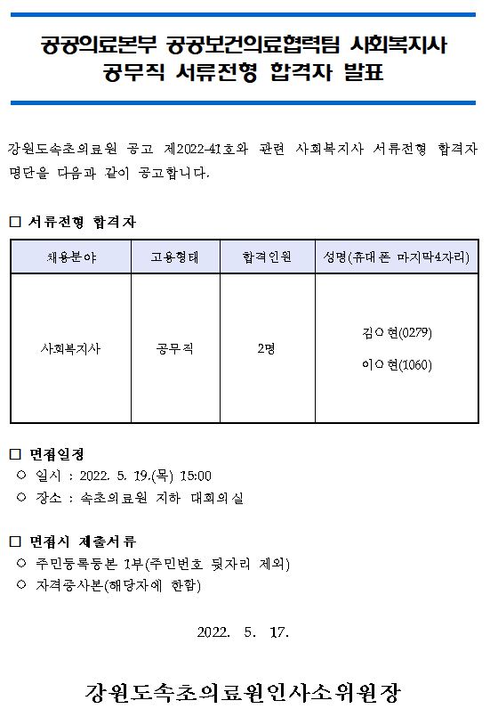 ¸ðÁýºÐ¾ß | °ø°øÀǷẻºÎ °ø°øº¸°ÇÀÇ·áÇù·ÂÆÀ »çȸº¹Áö»ç °ø¹«Á÷ ¼·ùÀüÇü ÇÕ°ÝÀÚ ¹ßÇ¥ |