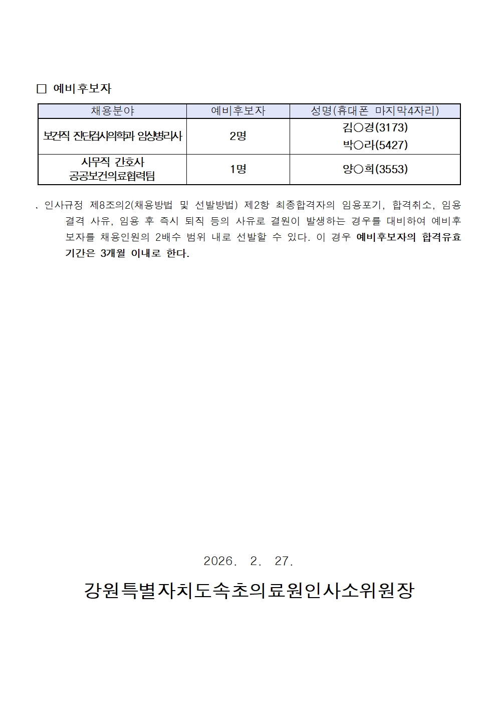 | ¸ðÁýºÐ¾ß | [ÃÖÁ¾ÇÕ°ÝÀÚ ¹ßÇ¥]Á¦2026-5È£ ±â´ÉÁ÷, °£È£Á÷, º¸°ÇÁ÷, »ç¹«Á÷ ä¿ë°ø°í |