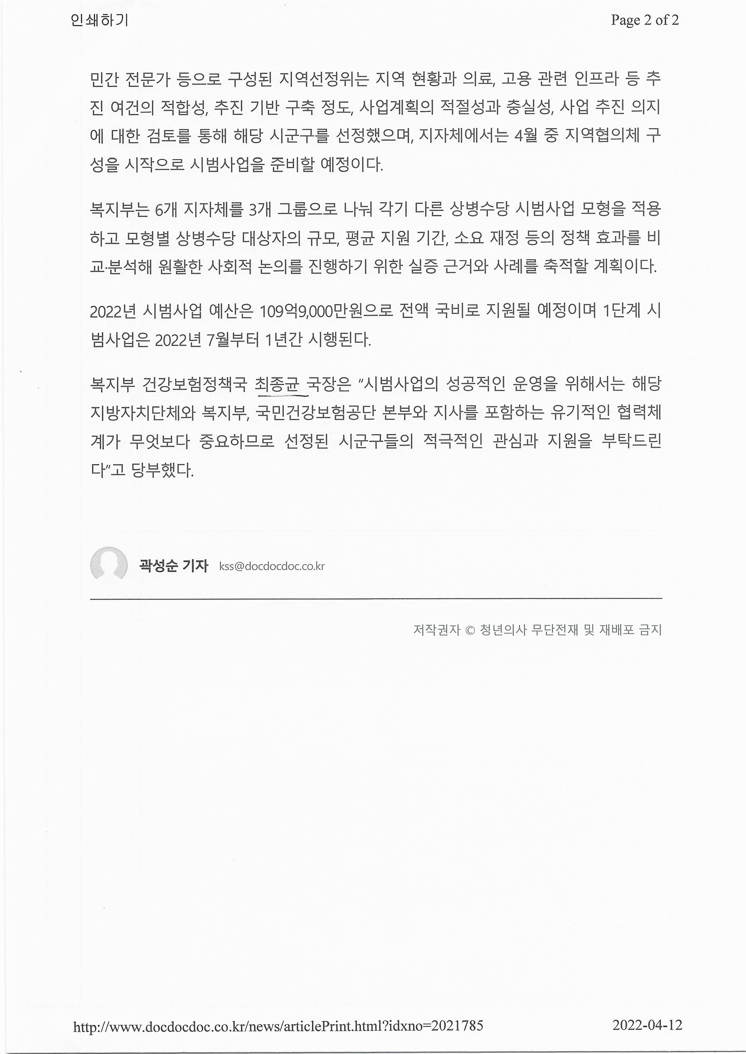 2022³â 4¿ù 13ÀÏÀÚ °ø°øÀÇ·á°ü·Ã ¾ð·Ðµ¿ÇâÀÔ´Ï´Ù.